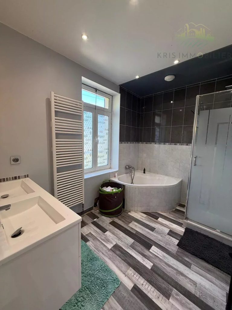 à l’étage un palier desservant une salle de bains, un wc séparé, 3 chambres spacieuses dont avec un dressing.